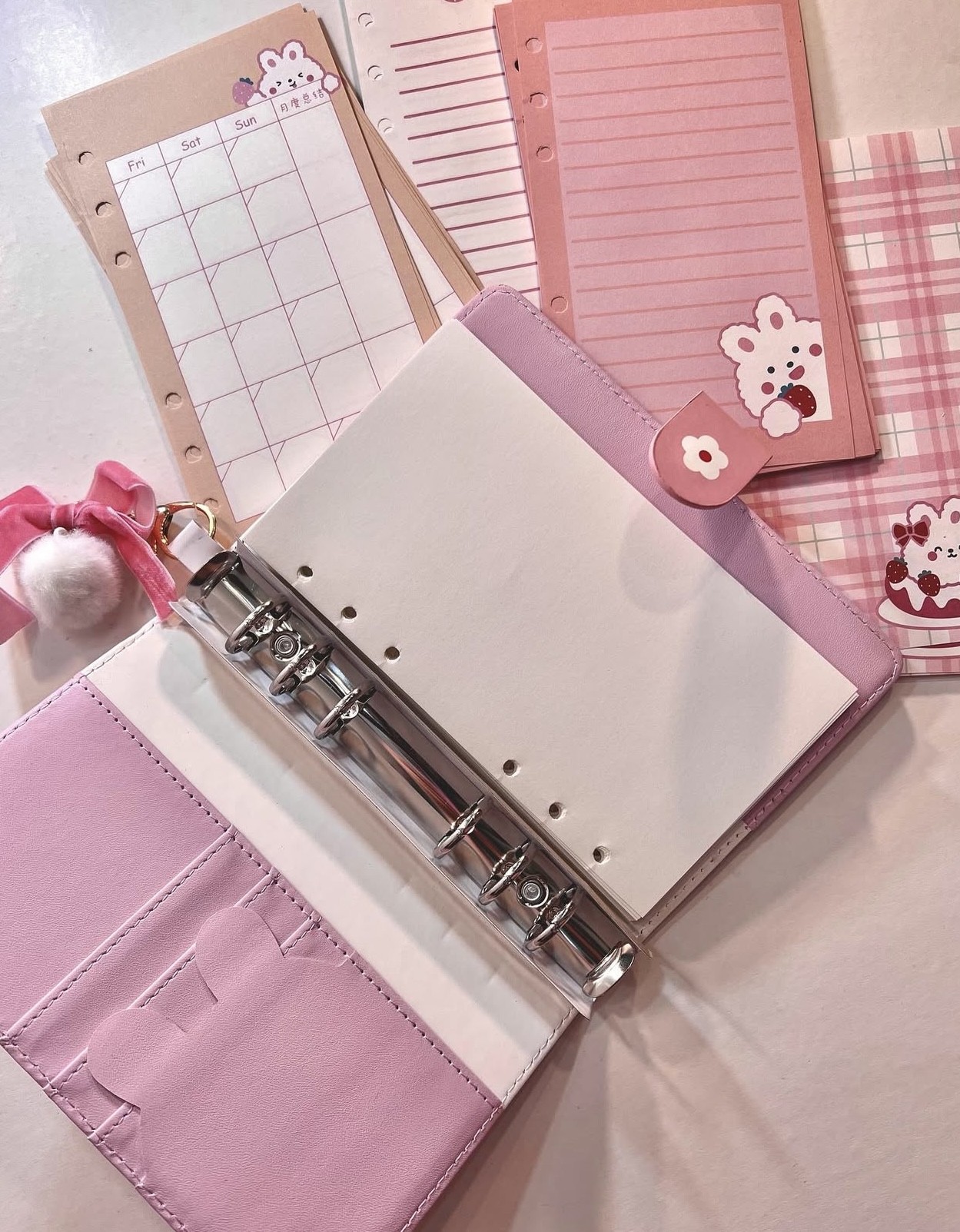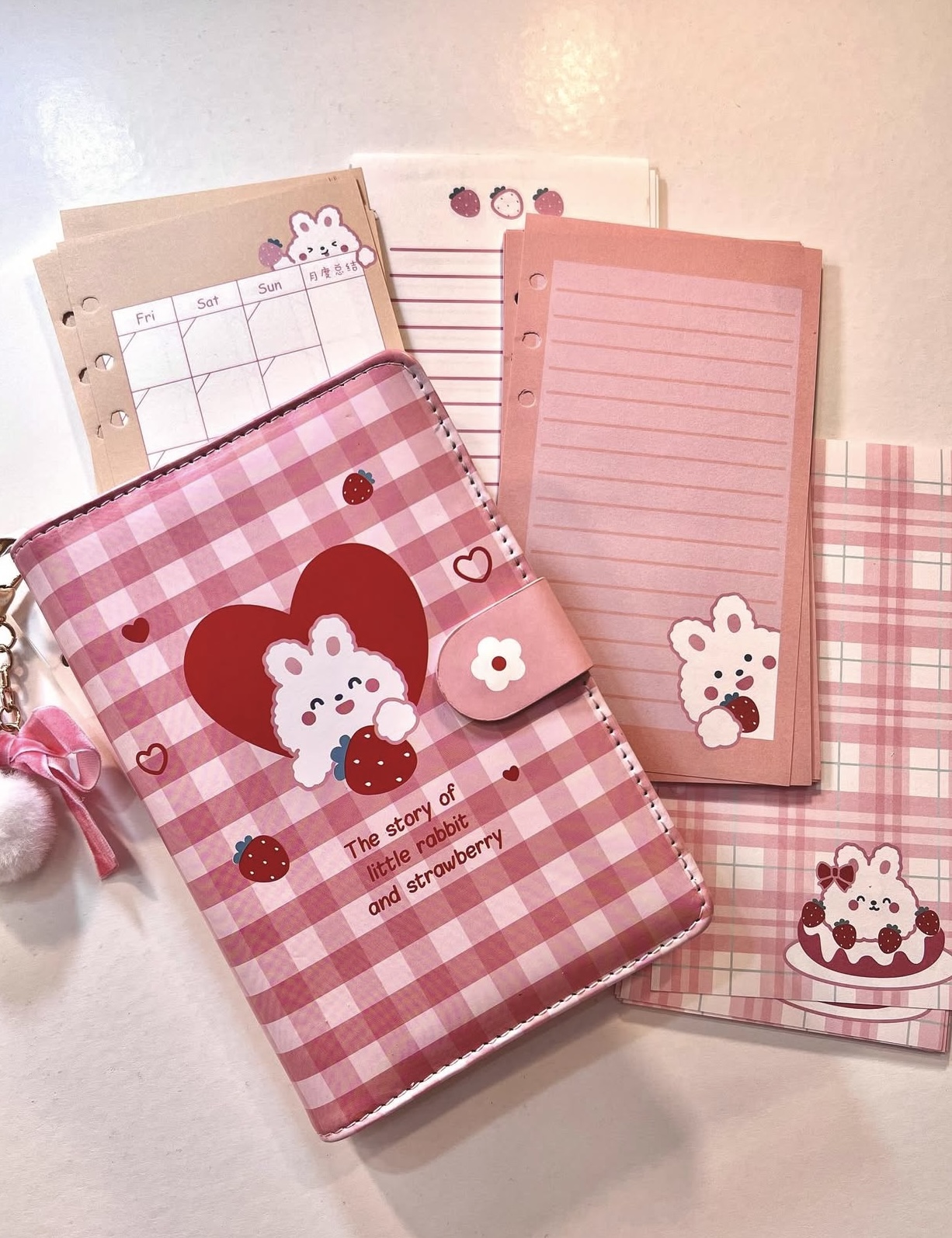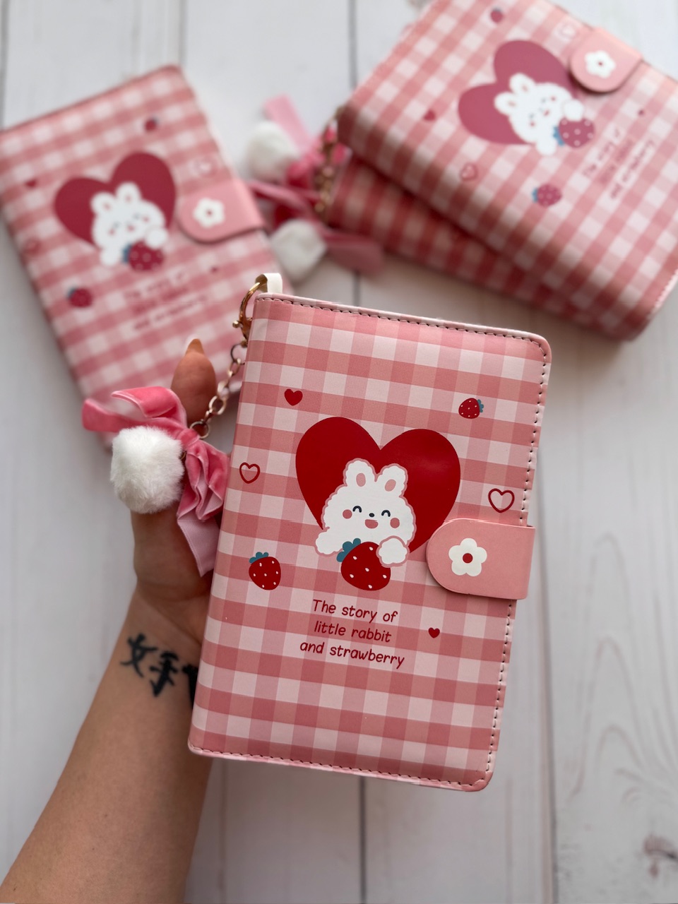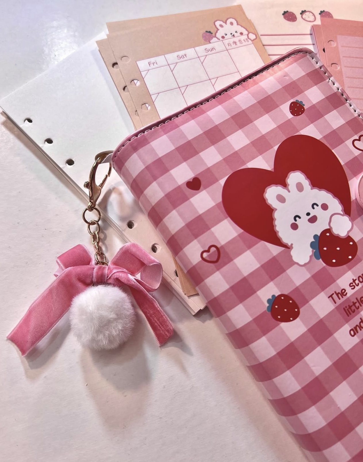 کلاسور چرمی توت فرنگی وارداتی🍓 -صد برگ -دارای آویز پوم پوم -دارای ۵ مدل برگه مختلف -برگه ها قابل شارژ ✅ -ابعاد کلاسور ۱۲*۱۸ سانتیمتر
