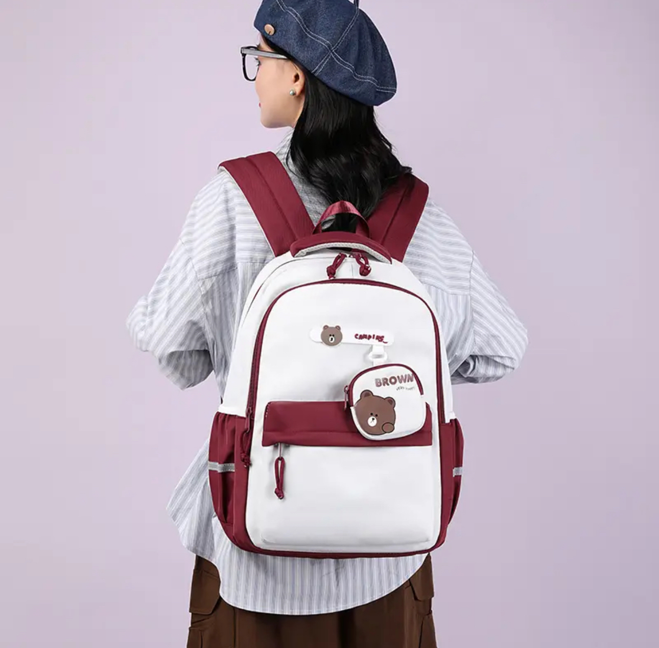 ست دو تکه کوله پشتی تدی وارداتی-کیفیت فوق العاده ضد آب هر ست شامل یک کوله پشتی و یک کیف پول تدی دارای محفظه لپتاپ دارای هولدر مخصوص چمدان برای حمل راحت در سفر دارای جیب های کناری جهت حمل قمقمه،چتر و ... ابعاد: ۲۱*۳۱*۴۵ سانتیمتر