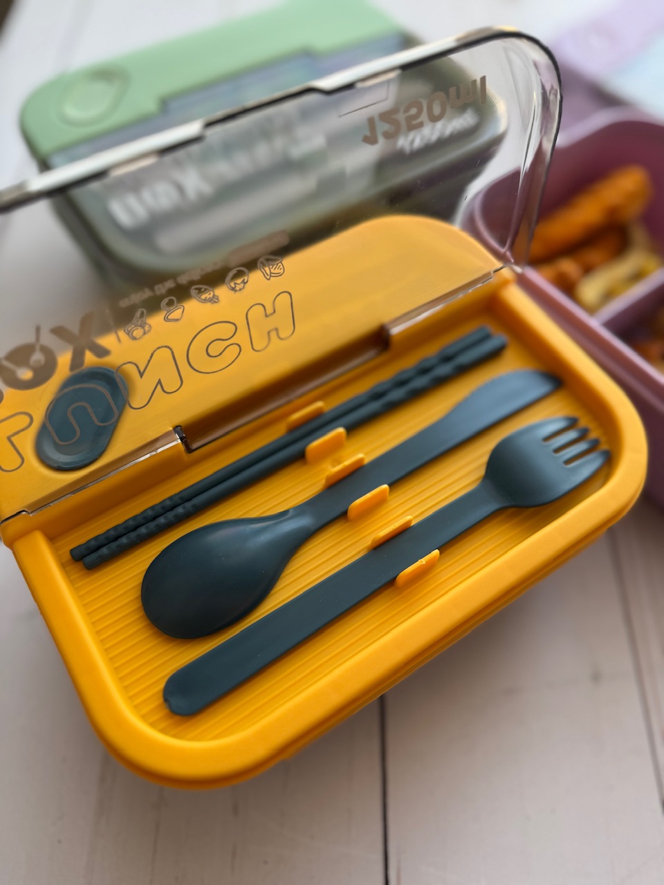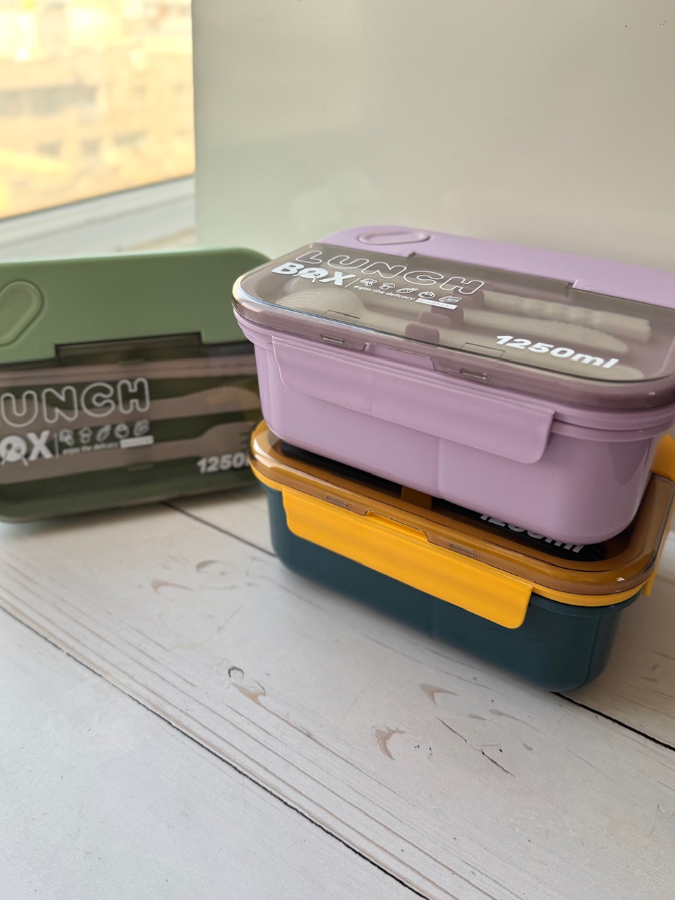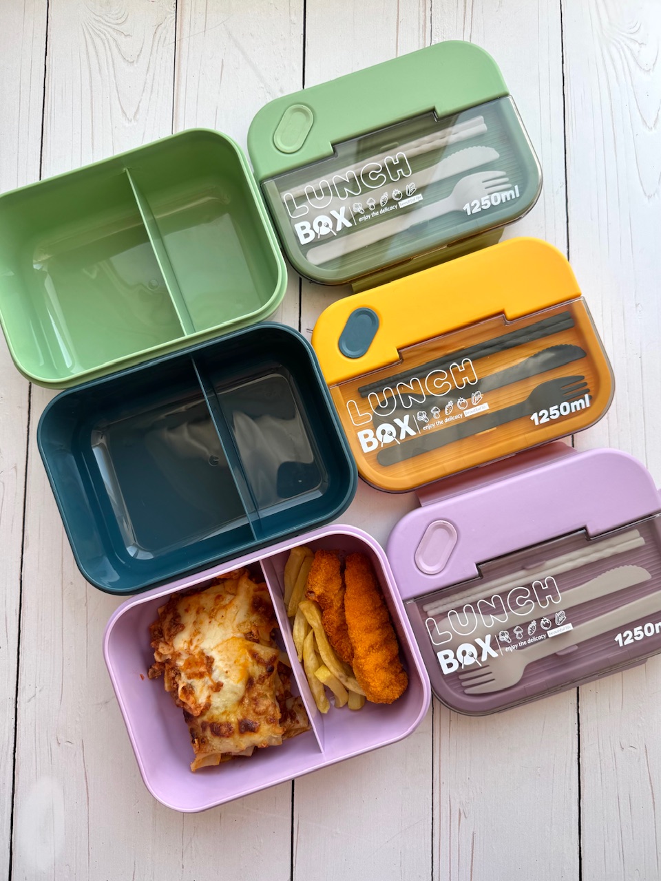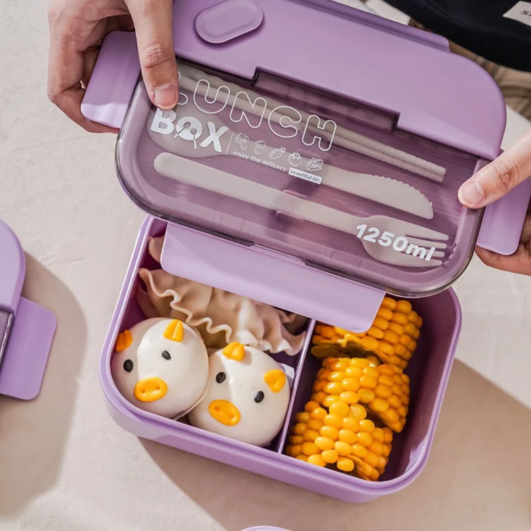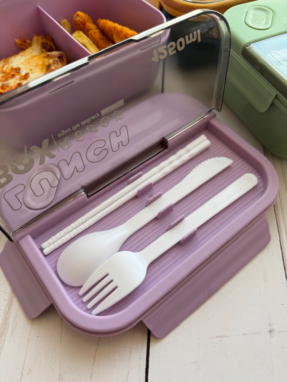 لانچ باکس وارداتی مستطیلی🍱 -ظرف غذای دوقسمتی جهت جداسازی برنج و خورشت -به همراه قاشق و چنگال و چاقو و چاپ استیک -واشر دار و بدون نشتی -قابل استفاده در ماکروفر -گنجایش ۱۲۵۰ میلی لیتر -ابعاد: ۸*۱۴*۲۰ سانتیمتر -رنگبندی : سبز، سورمه ای، بنفش