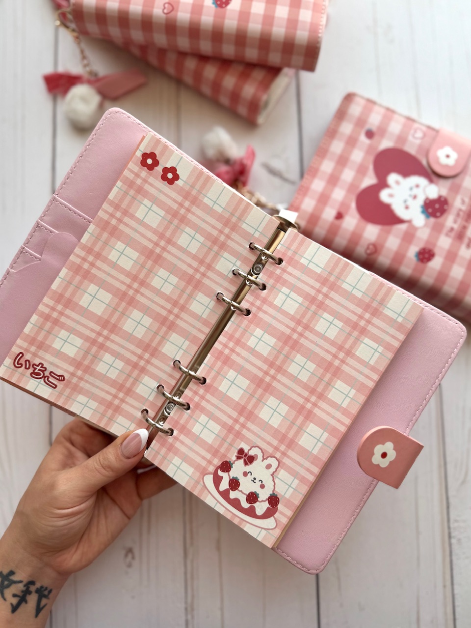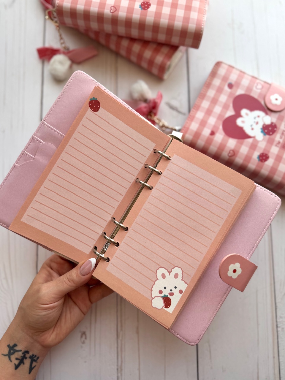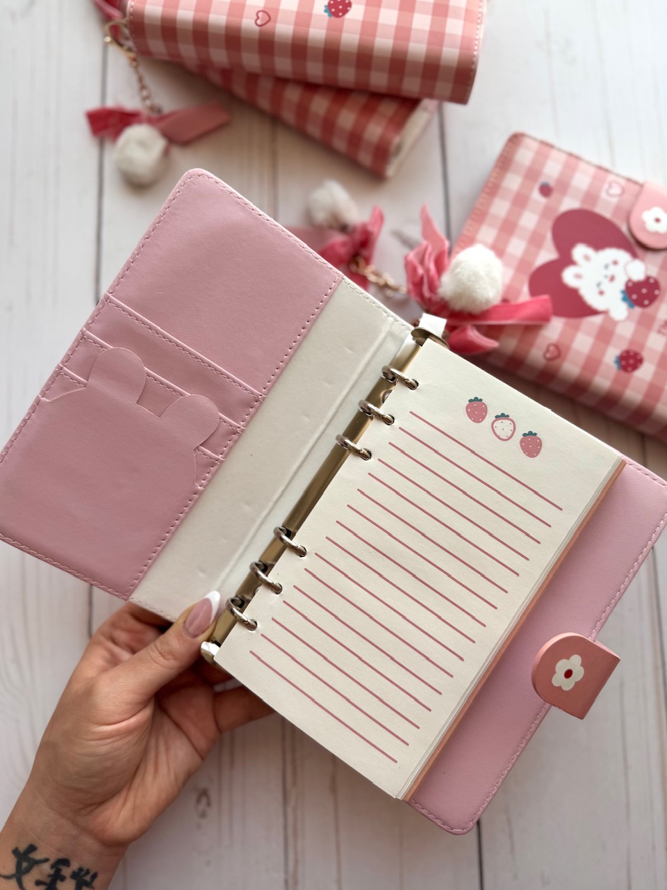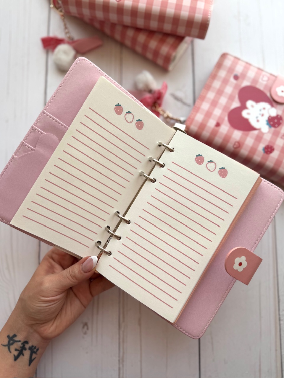 کلاسور چرمی توت فرنگی وارداتی🍓 -صد برگ -دارای آویز پوم پوم -دارای ۵ مدل برگه مختلف -برگه ها قابل شارژ ✅ -ابعاد کلاسور ۱۲*۱۸ سانتیمتر